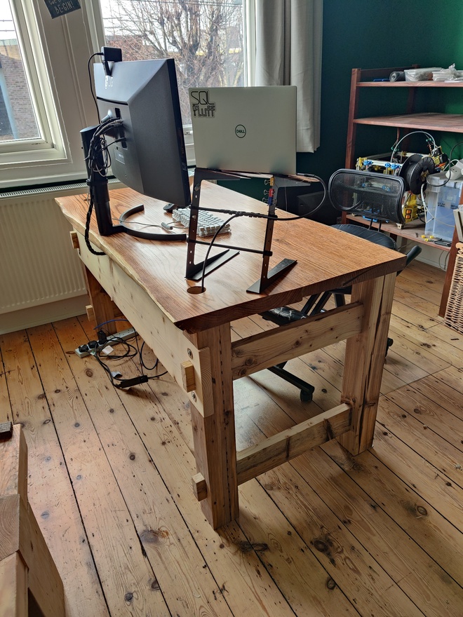 The result is a desk I absolutely love working at. It’s solid, doesn’t wobble, and the oak surface has developed a lovely patina from daily use. The fact that it can be disassembled for moving was definitely a good call - this thing is heavy.