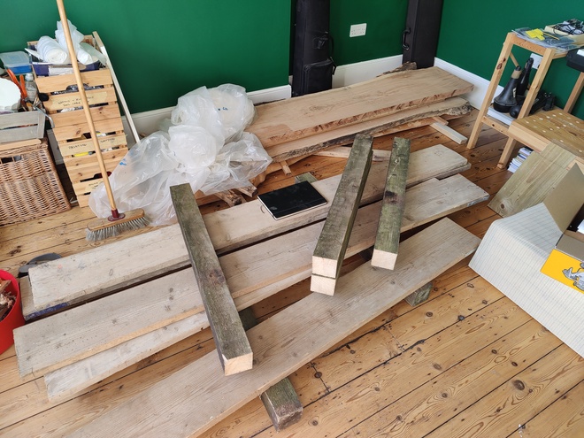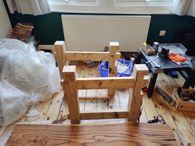 The design was relatively simple - I wanted the desk to look substantial and show off the beautiful oak grain, whilst also being sturdy enough to not wobble (important for a work desk). For the legs, I opted again for reclaimed fence posts from peckham reclamation , but this time built them into frames using mortise and tenon joints. This would give me the stability I needed whilst keeping the rustic aesthetic.